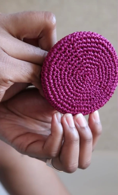 Our Moroccan exfoliating body tool is handcrafted of terra-cotta and covered with organic cotton, hand-dyed with natural pigments extracted from flowers and clay indigenous to the Atlas Mountains. It is a perfect addition to your skincare ritual for dry exfoliation, lymphatic drainage, and wet exfoliation coupled with your body cleanser.